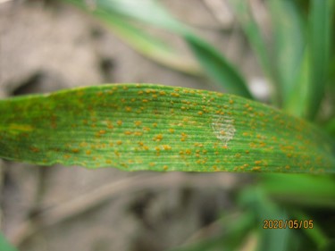 Figure 1. Stripe rust observed in an experimental field near Pullman, Washington on May 5, 2020.